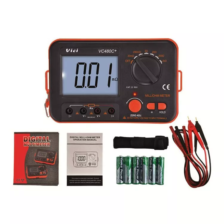 ●VC480C+ microohm (low resistance) tester, adopts four-wire measurement, which effectively subtracts the line resistance of the test line itself to ensure the measurement accuracy. It can test the short-wave nvis antenna resistance test, the voltage equalization ring welding of the building curtain wall lightning protection device, the reliability test of the high-voltage wire erection, the heating components, the wire resistance and the conductor connection resistance of various trains, EMUs and equipment.