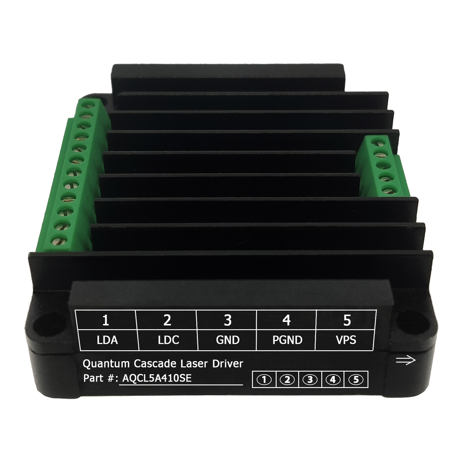 AQCL5A410SE is a quantum cascade laser driver with single ended input control. The AQCL5A410SE is a chassis mount electronic module designed for driving QCLs. It delivers ultra-low noise current and still preserves a wide modulation bandwidth. The AQCL5A410SE comes with protections for over-voltage, under-voltage, over current, and over temperature. To monitor the working status of the laser driver, there is a control loop good indication pin, LPGD; and the output current monitor pin, LIO.