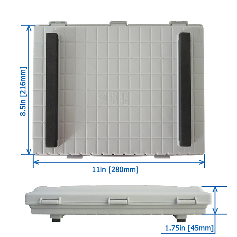 The enclosure takes up the same surface space as a letter sized paper measuring only: 11” (L) x 8.5” (W) x 1.75” (H) or 280 x 216 x 45 (mm).