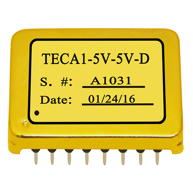 The TECA1-XV-XV-D is a compact gold plated electronic module designed for driving TECs (Thermo-Electric Coolers) with minimum external components to achieve high temperature stability high energy efficiency, and zero EMIs. It is vacuum potted thus also suitable for space applications.