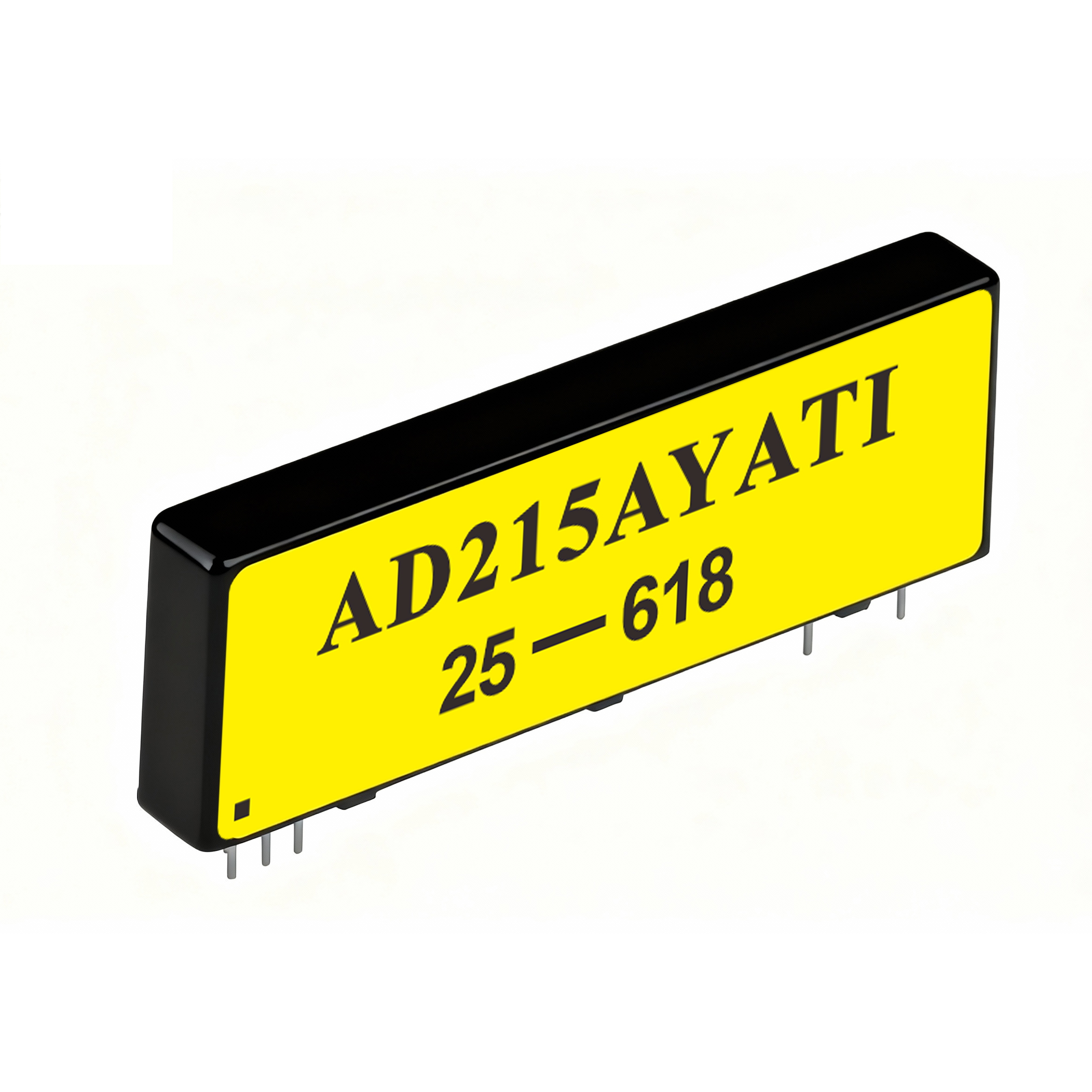 The AD210ATI provides complete isolation, with both signal and power isolation achieved through internal transformer coupling. Its fully integrated design, powered by a single +15V supply, eliminates the need for an external DC/DC