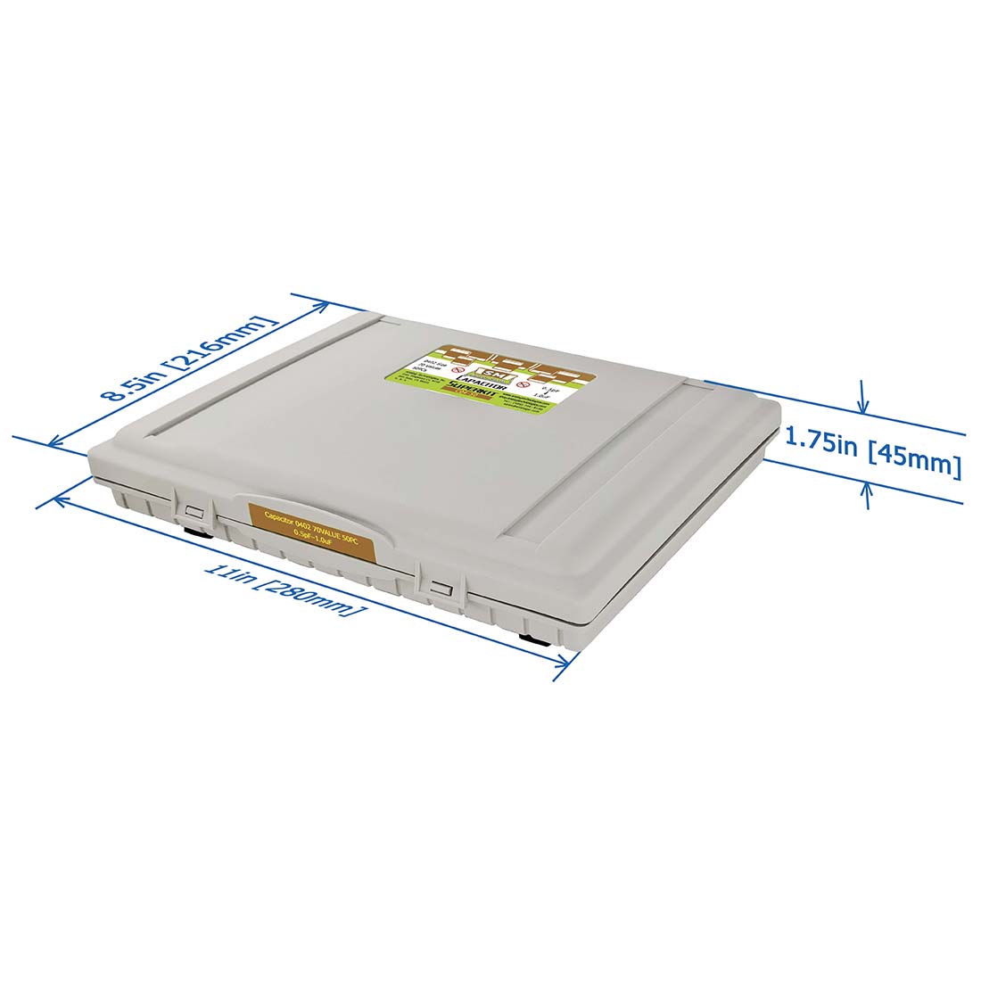 Operating the enclosure is easy and convenient that your time for obtaining a particular capacitor is minimized to just seconds. The kits can easily be placed on a work bench, put