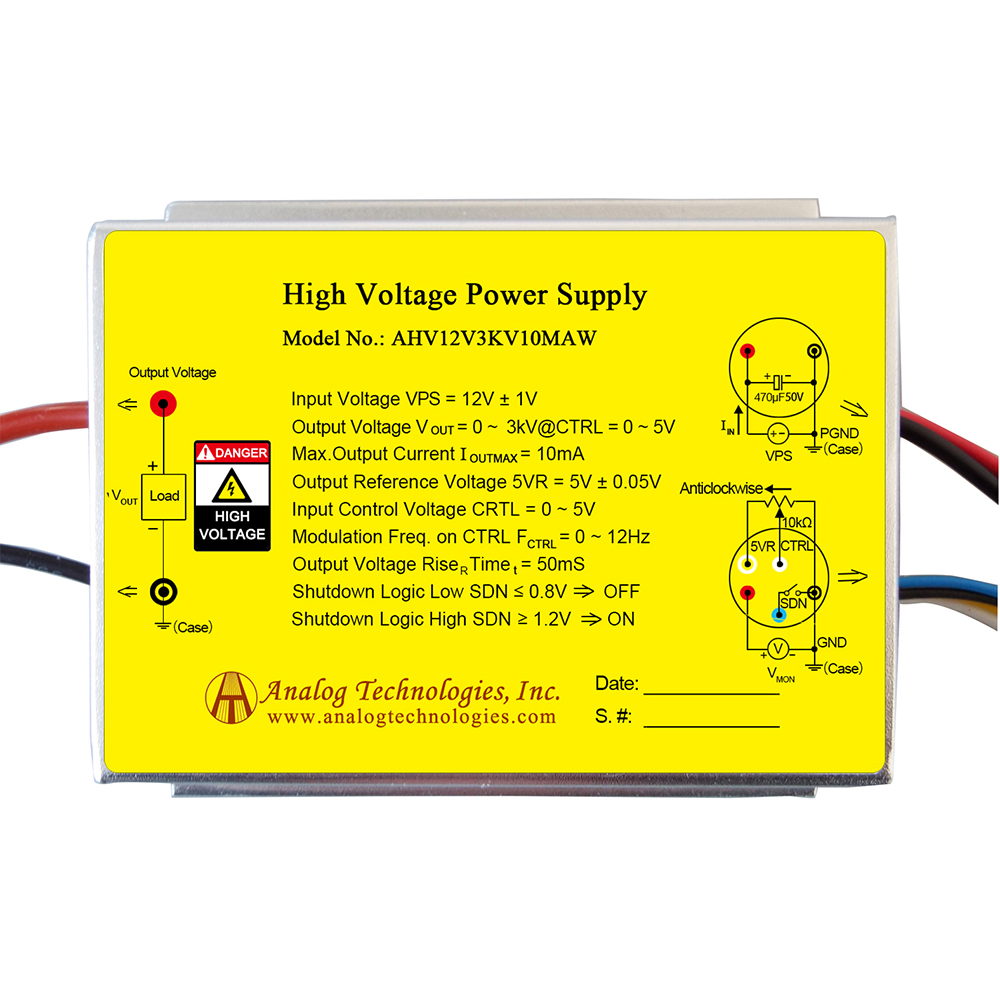 12V Input High Voltage Power Supply AHV12V3KV10MAW