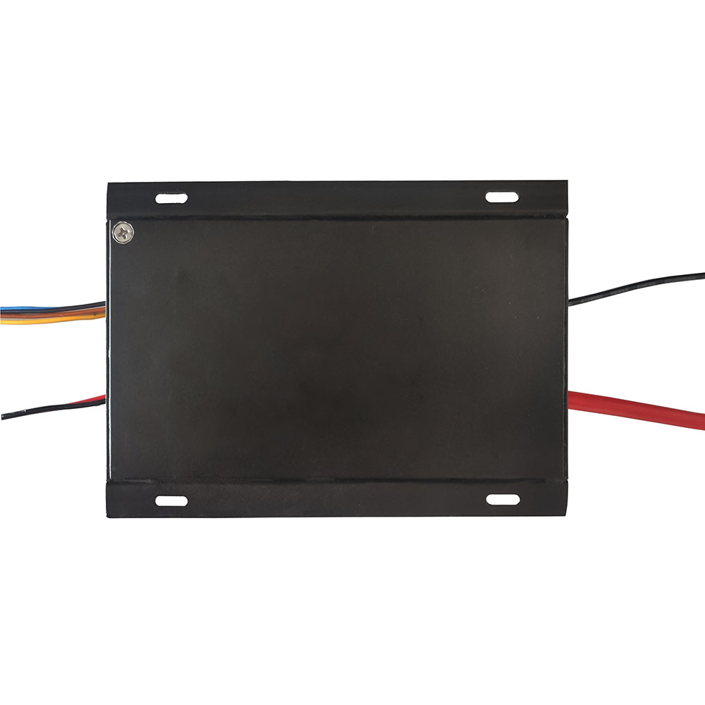 Draw a clear distinction between input lead and output lead: input 12V (red lead), ground electrodes (black lead), regulation wire (white lead), reference voltage 5V (yellow lead), shutdown (blue lead), and output high-tension cable (thick brown lead).