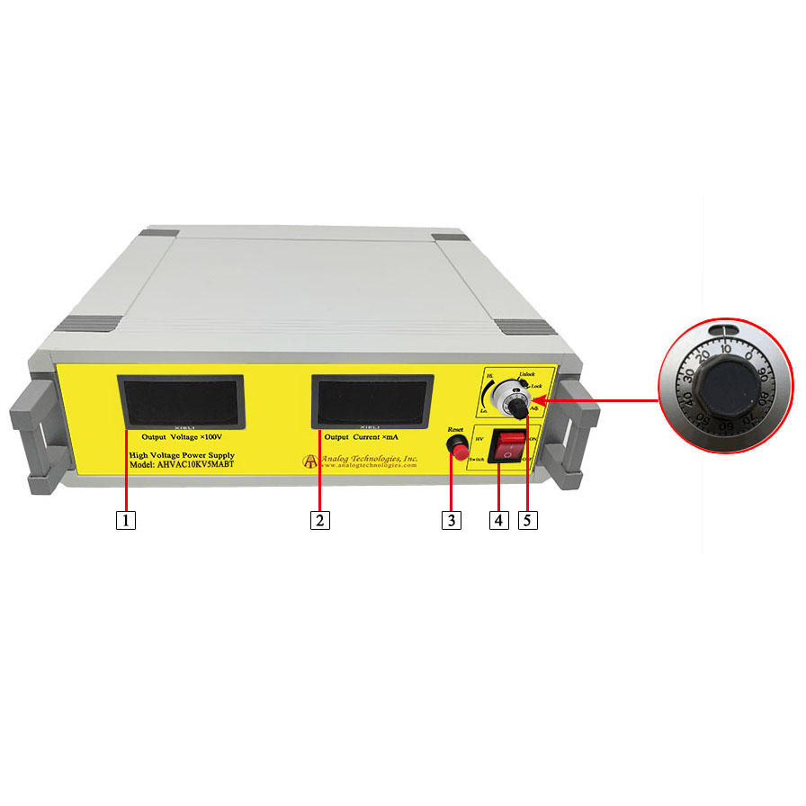 To operate the high voltage power supply, first connect the AC 90~230V input, and then turn on the power. Ensure the potentiometer is set to "0" before opening