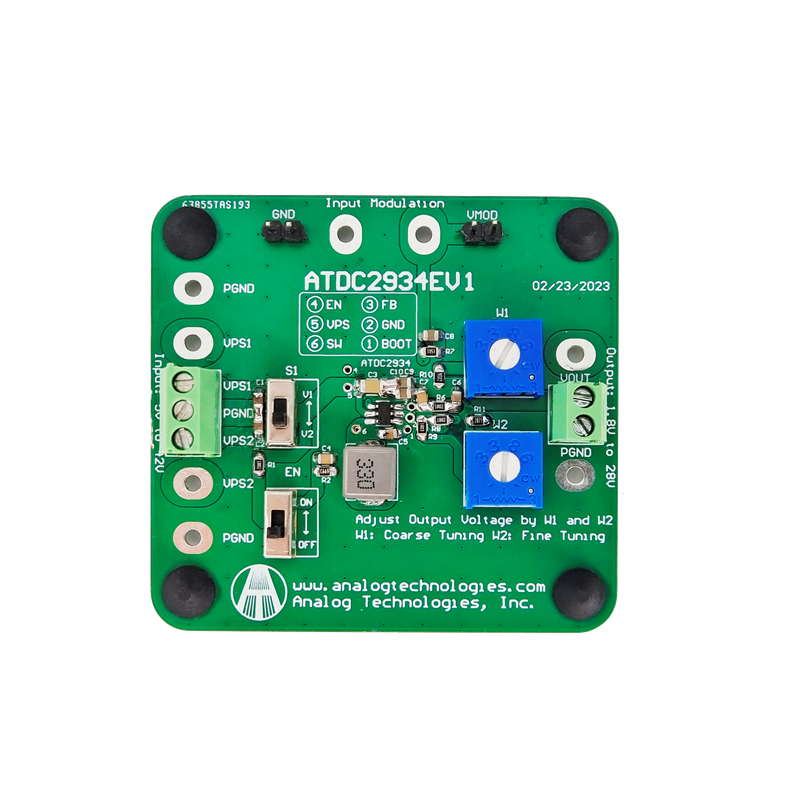 This evaluation board, ATDC2934EV1, is designed forevaluating the step-down DC/DC converter ATDC2934conveniently. It is recommended to read this applicationnote with the converter datasheet which provides moredetail information about the specifications andapplication guidance for the converter.