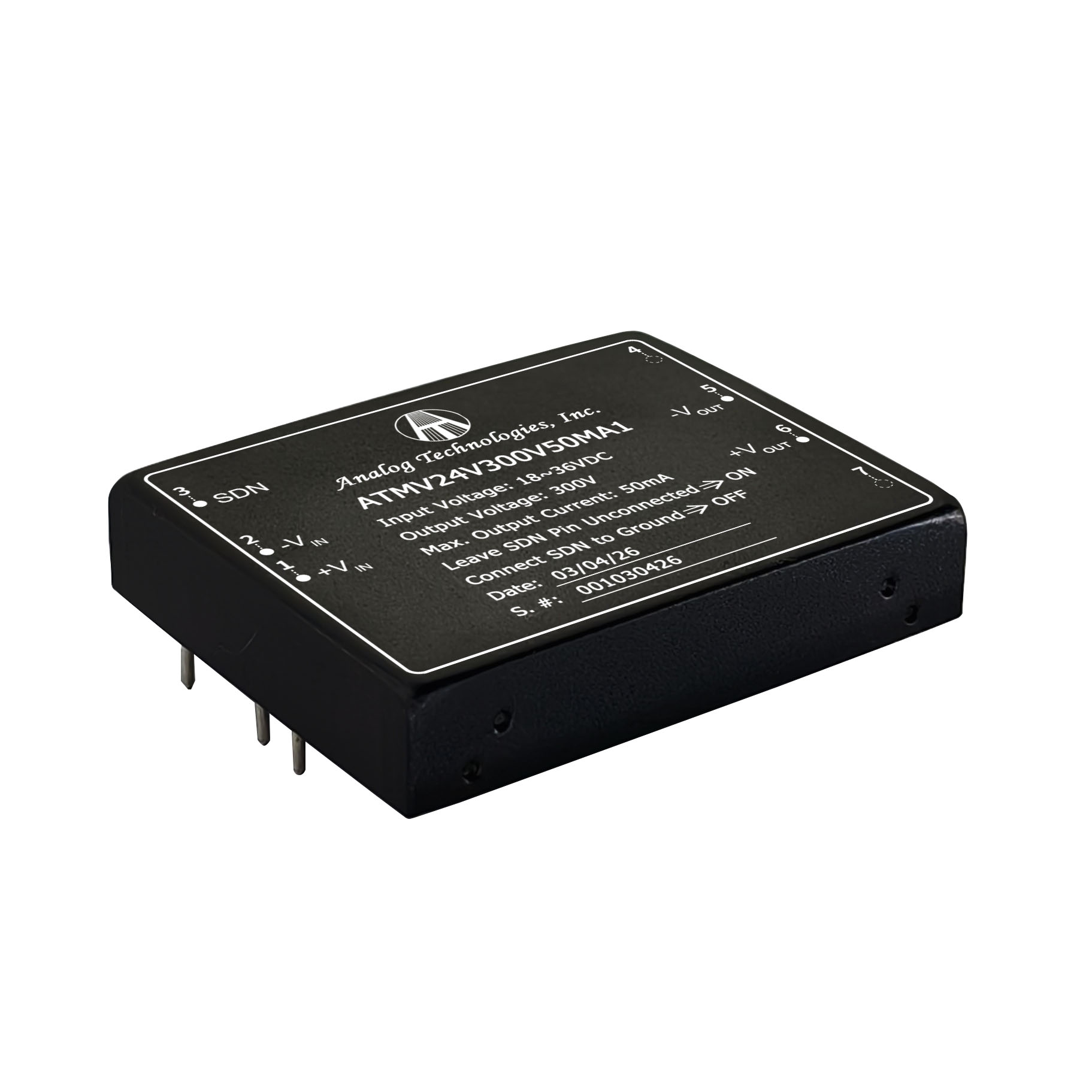 Medium Voltage 24V Input Isolated DC-DC Power Modules ATMV24V300V50MA1