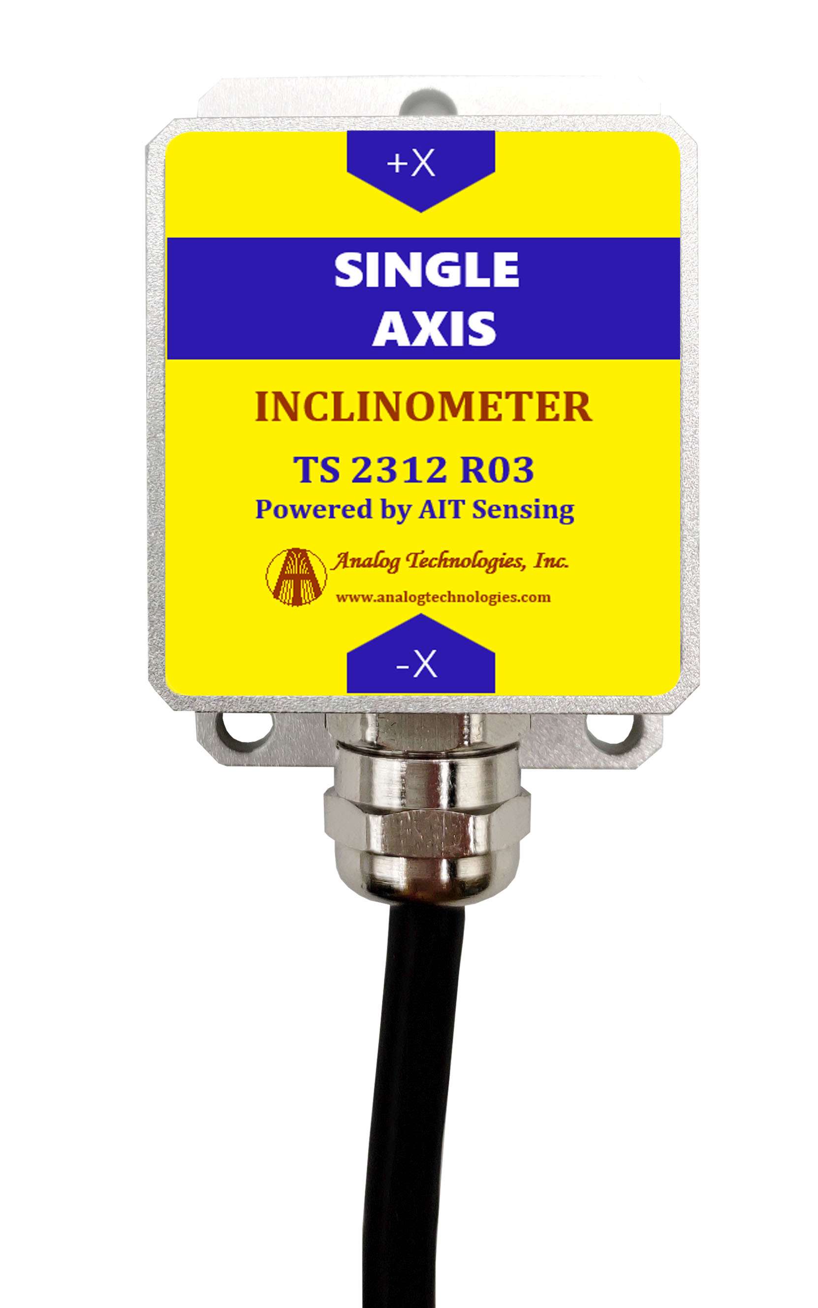 The TS-2312-R03, developed and manufactured by AIT Sensing, is a cost - effective single - axis inclinometer. It offers RS232/RS485/TTL Optional Modbus output. It incorporates a well - established industrial - grade MEMS accelerometer, with a measurement range of ±180° and a maximum accuracy of 0.2°. The operating temperature range extends from −40°C to + 85°C.