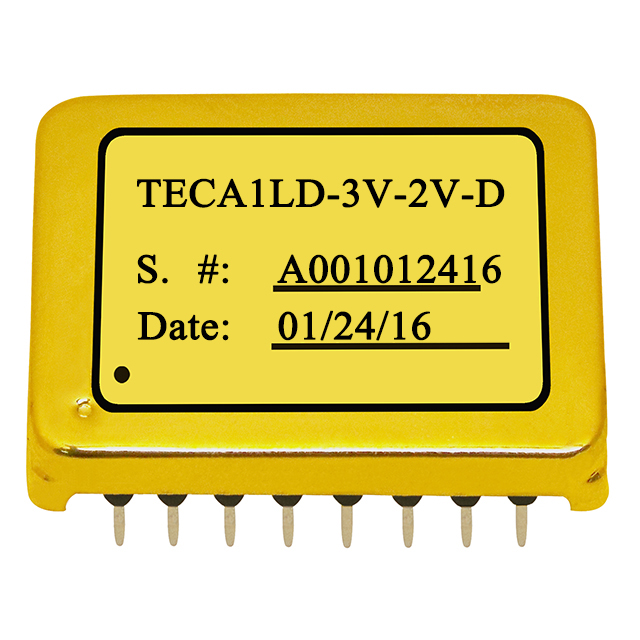 The TECA1-XV-XV-D is a compact gold plated electronic module designed for driving TECs (Thermo-Electric Coolers) with minimum external components to achieve high temperature stability high energy efficiency, and zero EMIs. It is vacuum potted thus also suitable for space applications.