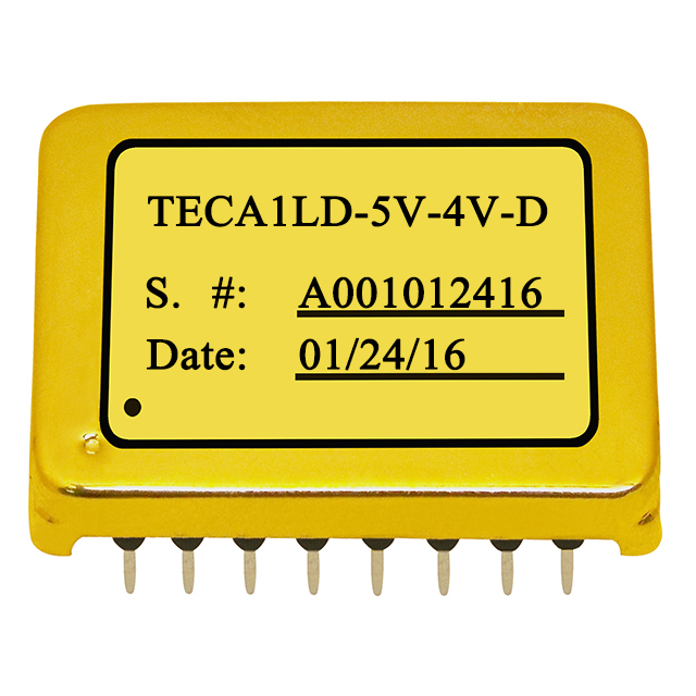The TECA1-XV-XV-D is a compact gold plated electronic module designed for driving TECs (Thermo-Electric Coolers) with minimum external components to achieve high temperature stability high energy efficiency, and zero EMIs. It is vacuum potted thus also suitable for space applications.