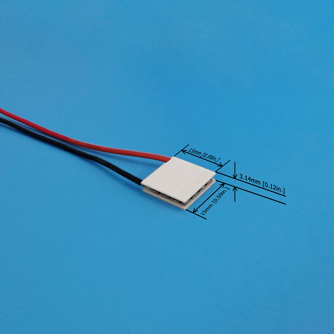 This series of TEC (Thermoelectric Cooler) modules, ATE1-31, has 31 pairs of Peltier elements inside with a maximum voltage of 3.9 Volt, there are several options for