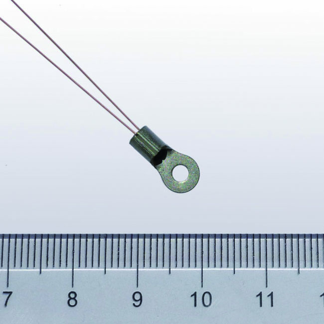 The ATH100KL2B is a thermistor assembly with a glass encapsulated thermistor packaged in an extra compact ring lug. The ATH100KL2B series thermistor consists of three versions, ATH100KL2B, ATH100KL2BT70 and ATH100KL2BT70S. The ATH100KL2B has bear leads coated with copper, the ATH100KL2BT70S has the leads covered by high temperature plastic tubing and sealed by epoxy, while the ATH100KL2BT70 is the non-sealed version. Comparing with conventional assemblies containing epoxy encapsulated thermistors, ATH100KL2B series thermistor presents higher long term stability, higher reliability and wider temperature range. In addition, it has a small size and short response time.