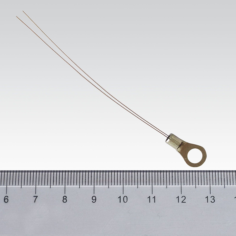 The ATH10KL2D is a thermistor assembly with a glass encapsulated thermistor packaged in an extra compact ring lug. The ATH10KL2D series thermistor consists of three versions, ATH10KL2D, ATH10KL2DT70 and ATH10KL2DT70S. The ATH10KL2D has bare leads coated with copper, the ATH10KL2DT70S has the leads covered by high temperature plastic tubing and sealed by epoxy, while the ATH10KL2DT70 is the non-sealed version. Comparing with conventional assemblies containing epoxy encapsulated thermistors, ATH10KL2D series thermistor presents higher long term stability, higher reliability and wider temperature range. In addition, it has a small size and short response time